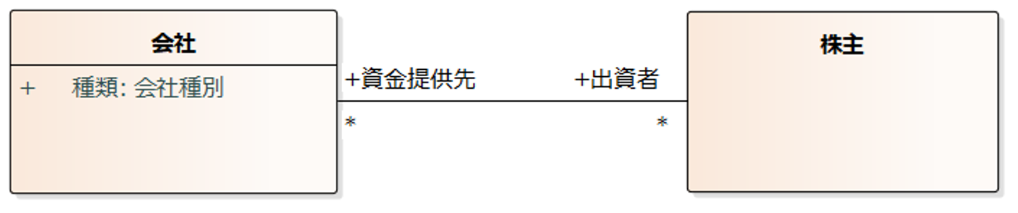 たとえば下図では、「株式会社」クラスにのみ「株主」(との関係)という特徴を表現できています。