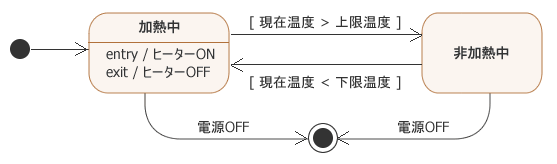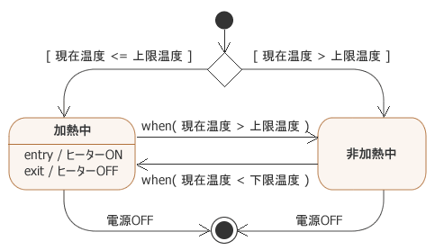 ...では、この保温器を正しく動作させるためにはどのようなステートマシン図を描けば良いのでしょうか?