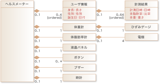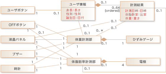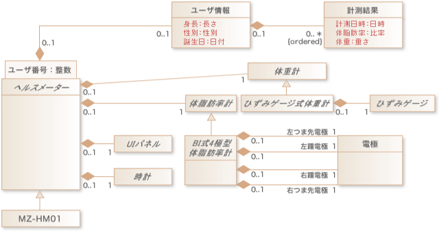 今回の記事では、以下のようなヘルスメーター(体重・体脂肪率計)の概念モデルを考えてみます。
