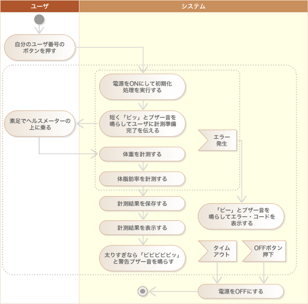 図3:ユースケース「体重・体脂肪率を計測する」のアクティビティ図