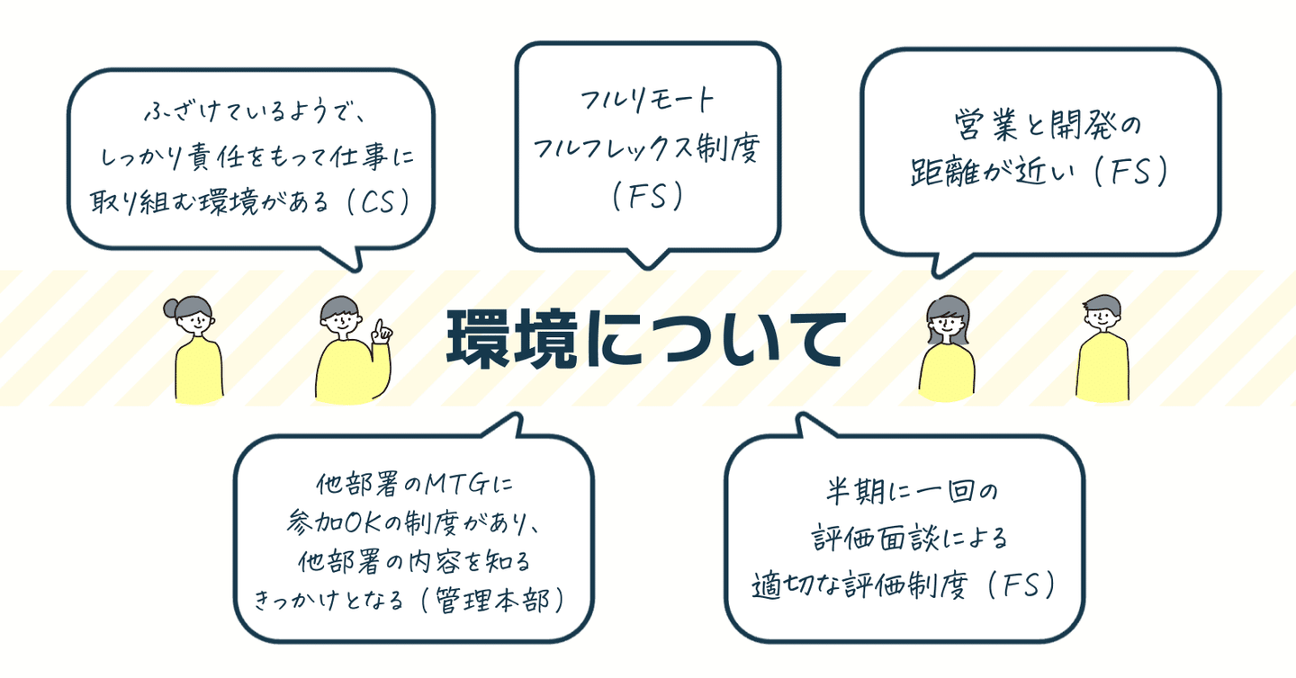 - 社歴に関係なく手を挙げて発言できる。どんな意見でもまずは受け止めてくれる安心感がある(CS)