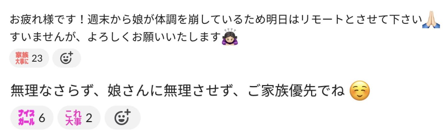 家族を大事にする文化が根付く、Slackの一部
