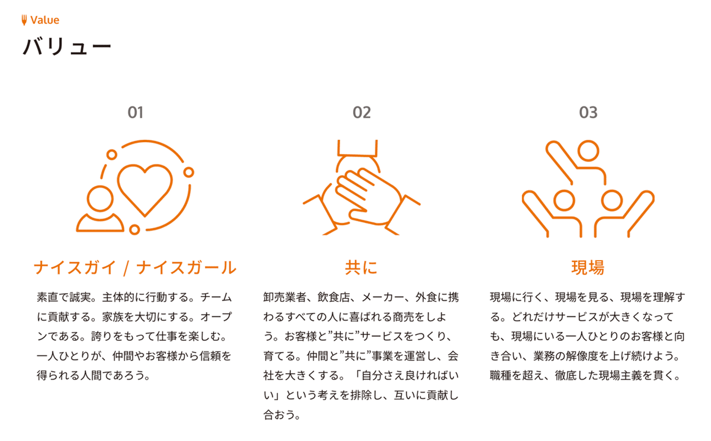 このビジョンに向かう中で私たちが特に大切にしているのが、「ナイスガイ/ナイスガール」「共に」「現場」という3つのバリューです!