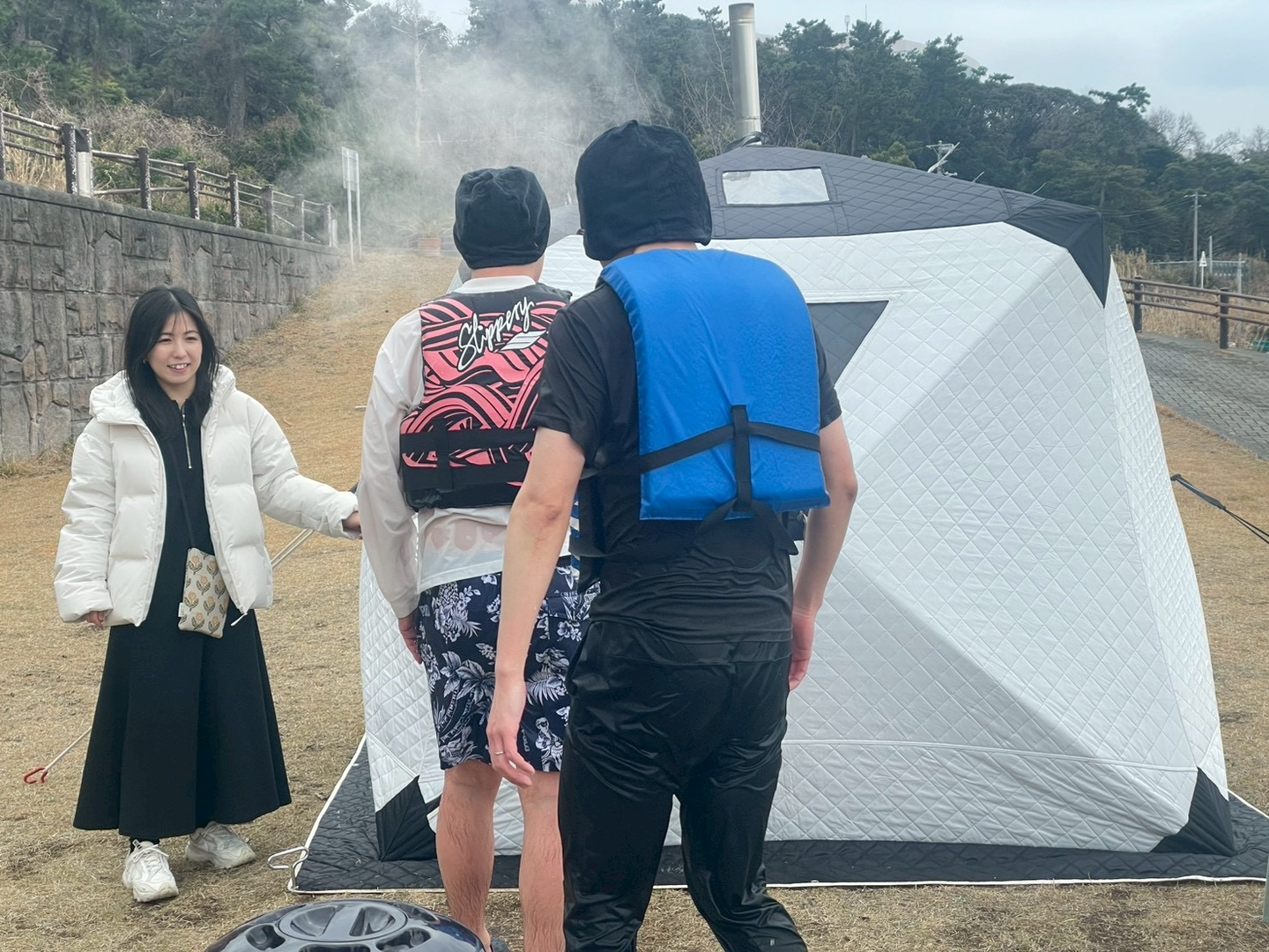 テントサウナでは、サウナに入った後に初島の海へダイブ🏕️🧖🌊
