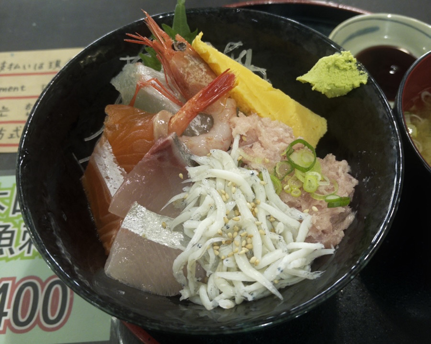 海鮮丼のお店が船着場近くにずらっと並んでいるので、開いているお店に行きました🐟