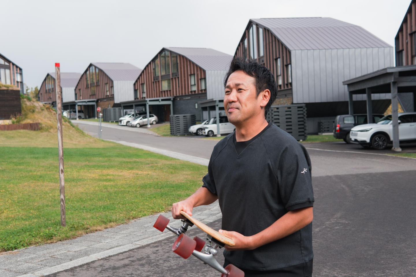 社員が趣味で持ち込んだスケートボードに挑戦する社長の姿も(笑)。