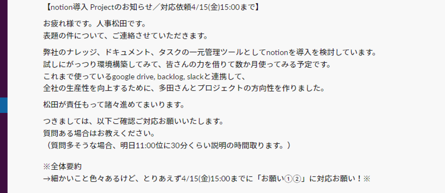 スピーディーな業務遂行・意志決定のためにはslackでのコミュニケーションが必須。一方で、whyを共有し、自律的に動く組織を作るためには一つ仕掛けが必要であると感じていました。