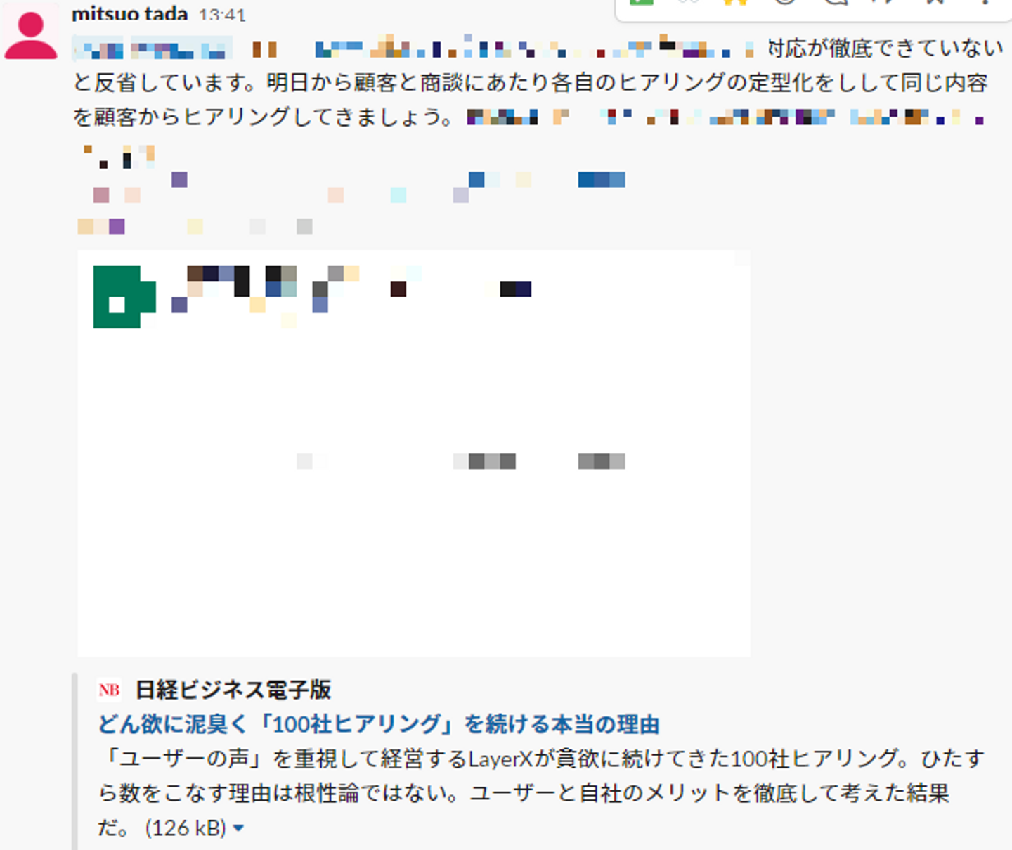 各MTGを受けての多田のslack。