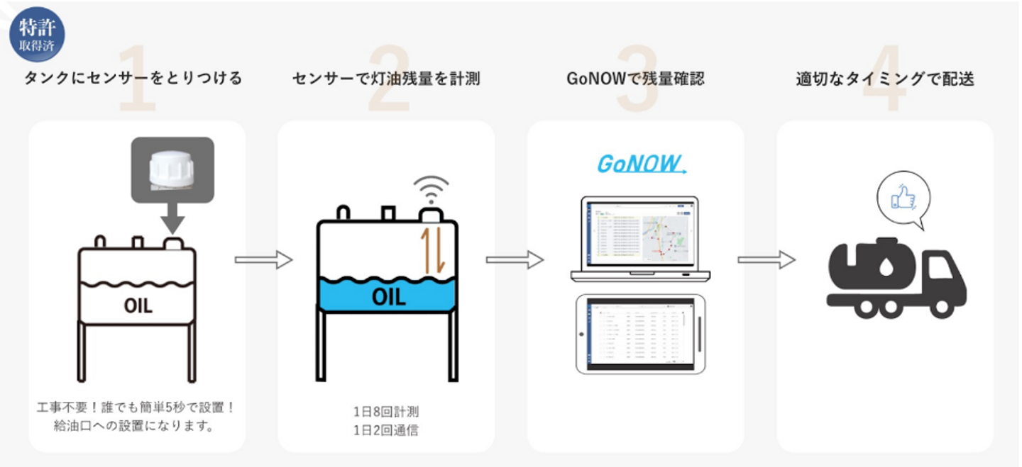 「GoNOW( https://5-now.com/ )」は灯油の配送計画を最適化するためのIoT×SaaSです。