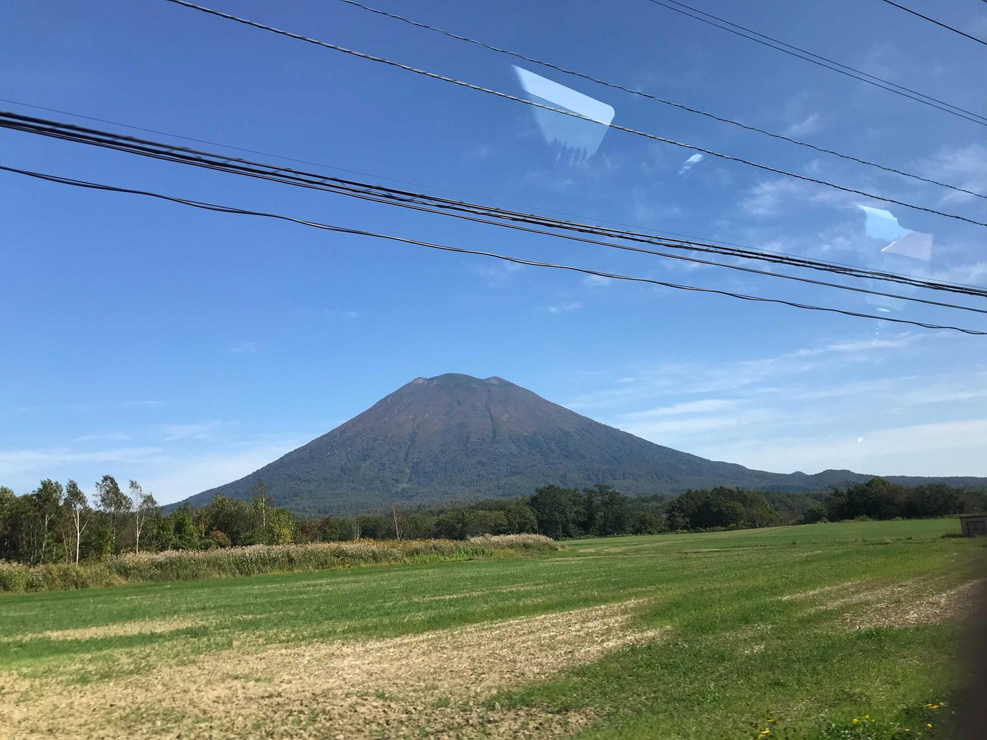 人事松田の個人撮影。朝の羊蹄山を見ながら歯磨き。