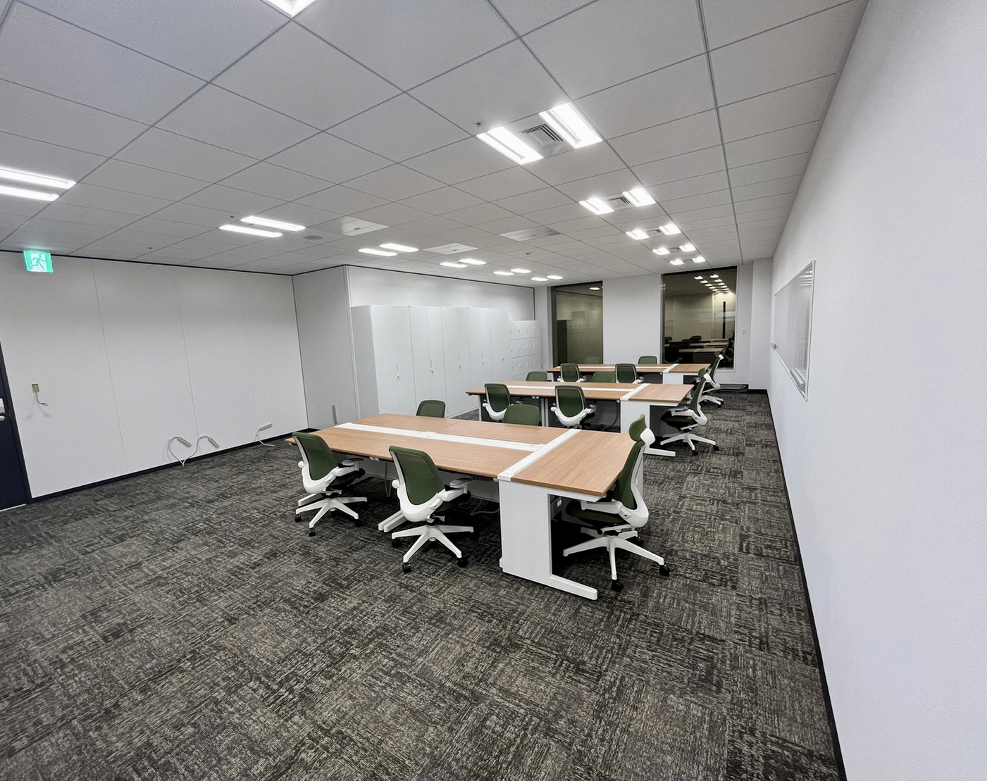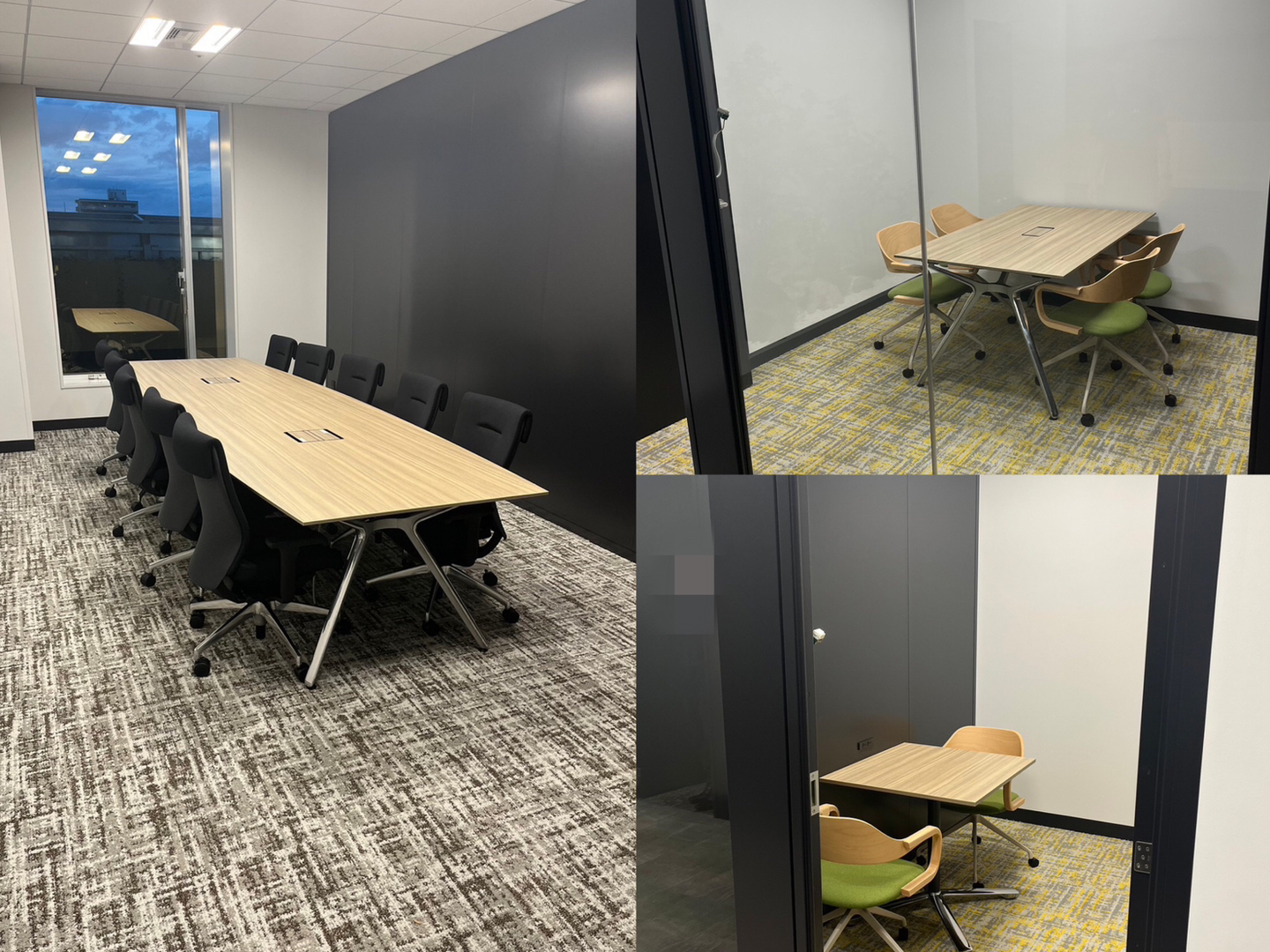 また移転に伴い、会議室を増設しました。大会議室から、ちょっとした打ち合わせにも使える小会議室も複数あり、ガラス張りにすることで明るく開放感があるスペースです。