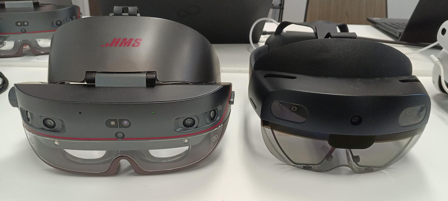 A1:現実空間にデジタル情報や仮想オブジェクトを重ねて表示することができるメガネ型またはヘッドセット型デバイスです。レンズやディスプレイ部分に「現実+デジタル映像」が映ります。