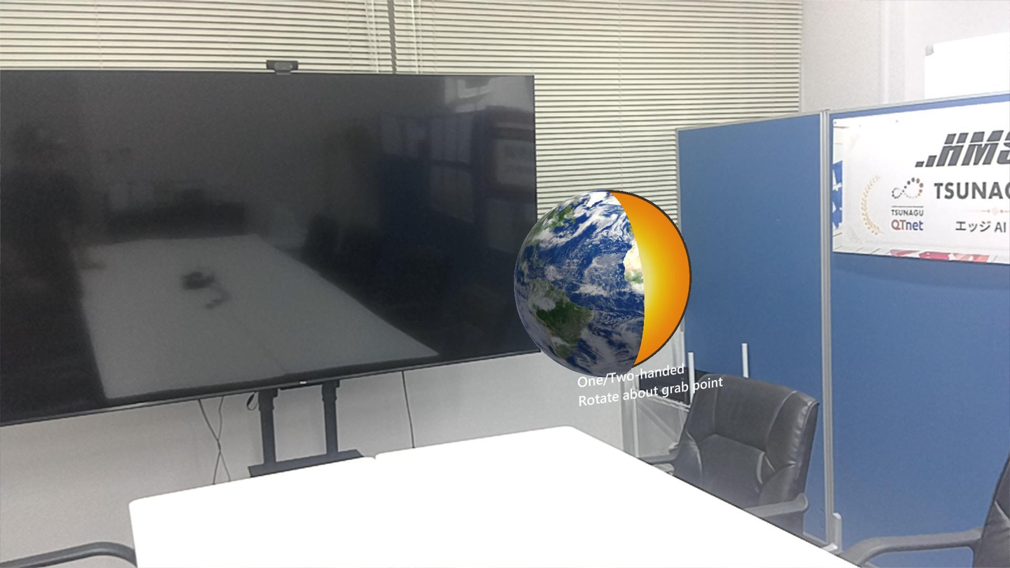 ※SiNGRAY G2越しに見える現実の机上に、地球の3Dモデルが表示されています。