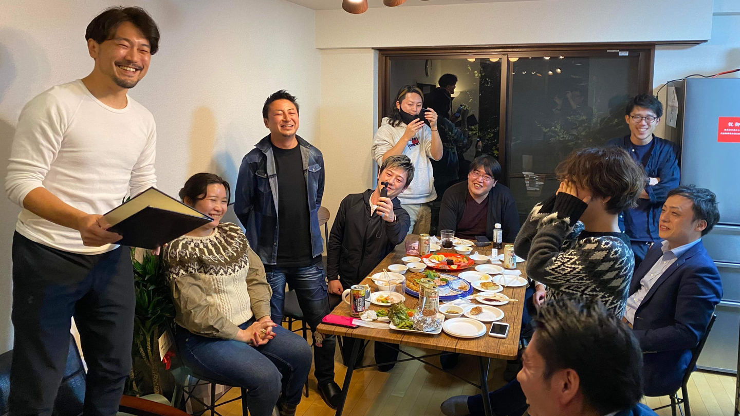 ▲そして2021年12月、現在のORENCH。これはインターン生カンウの記念すべき内定式の写真