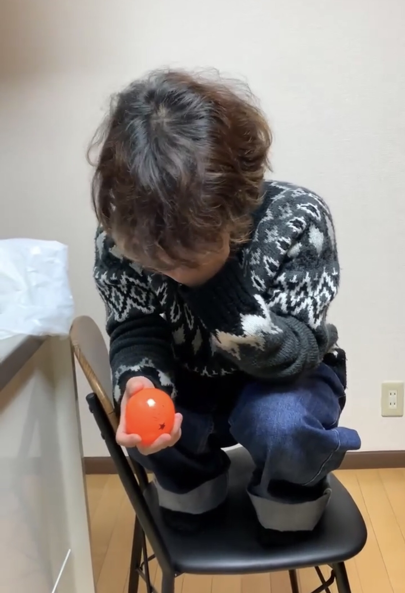 最後の内定ボールを見つけ、うずくまるカンウ君。