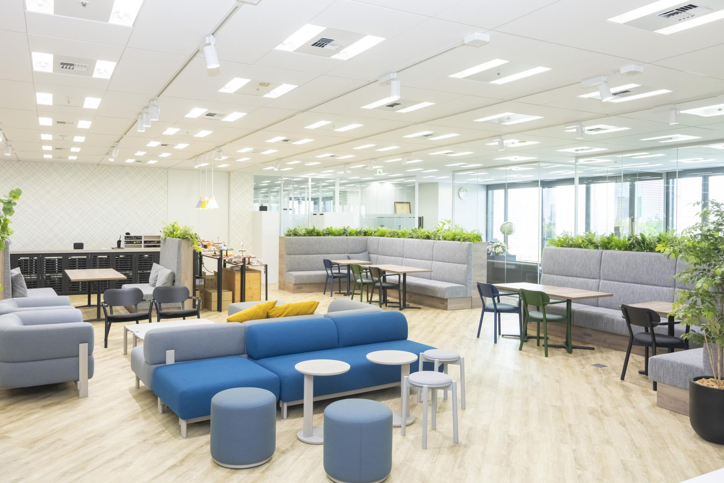2か月に1回、お昼休憩に丸の内オフィスにある「化学反応エリア」と呼ばれる交流スペースでお寿司やピザ、クリスプサラダワークスさんの高級サラダなどが振舞われます。