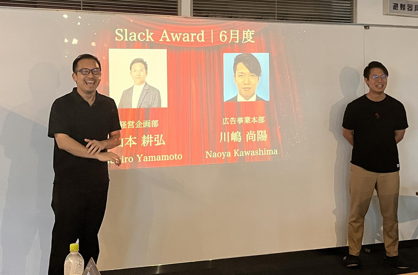 2024年度上半期のSlack Awardは、同率で2名!経営企画部の山本さんと広告事業部の川嶋さんでした✨