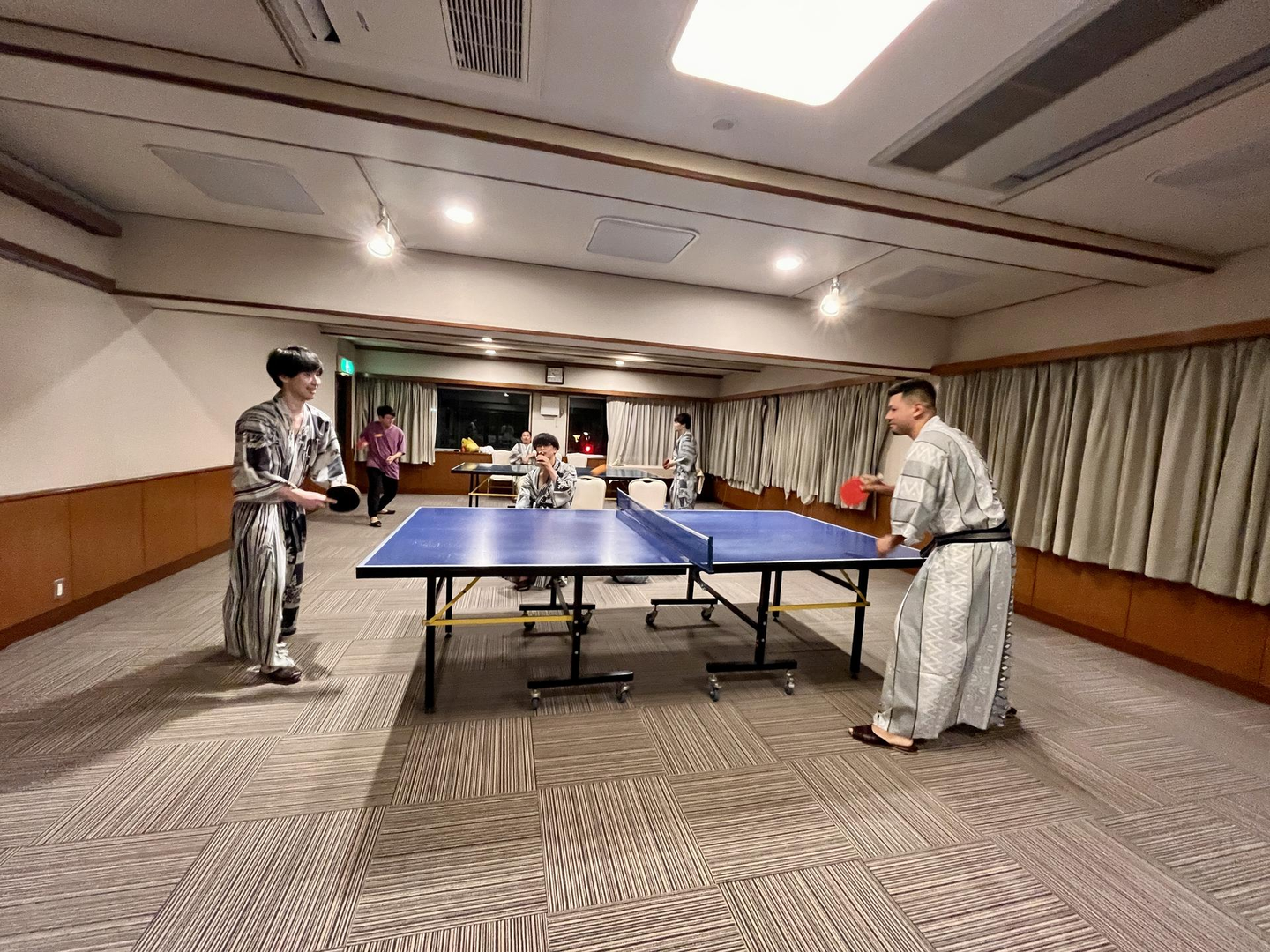 夕食の後は宿の大浴場で1日の疲れを洗い流し、夜は卓球大会の開催です🏓
