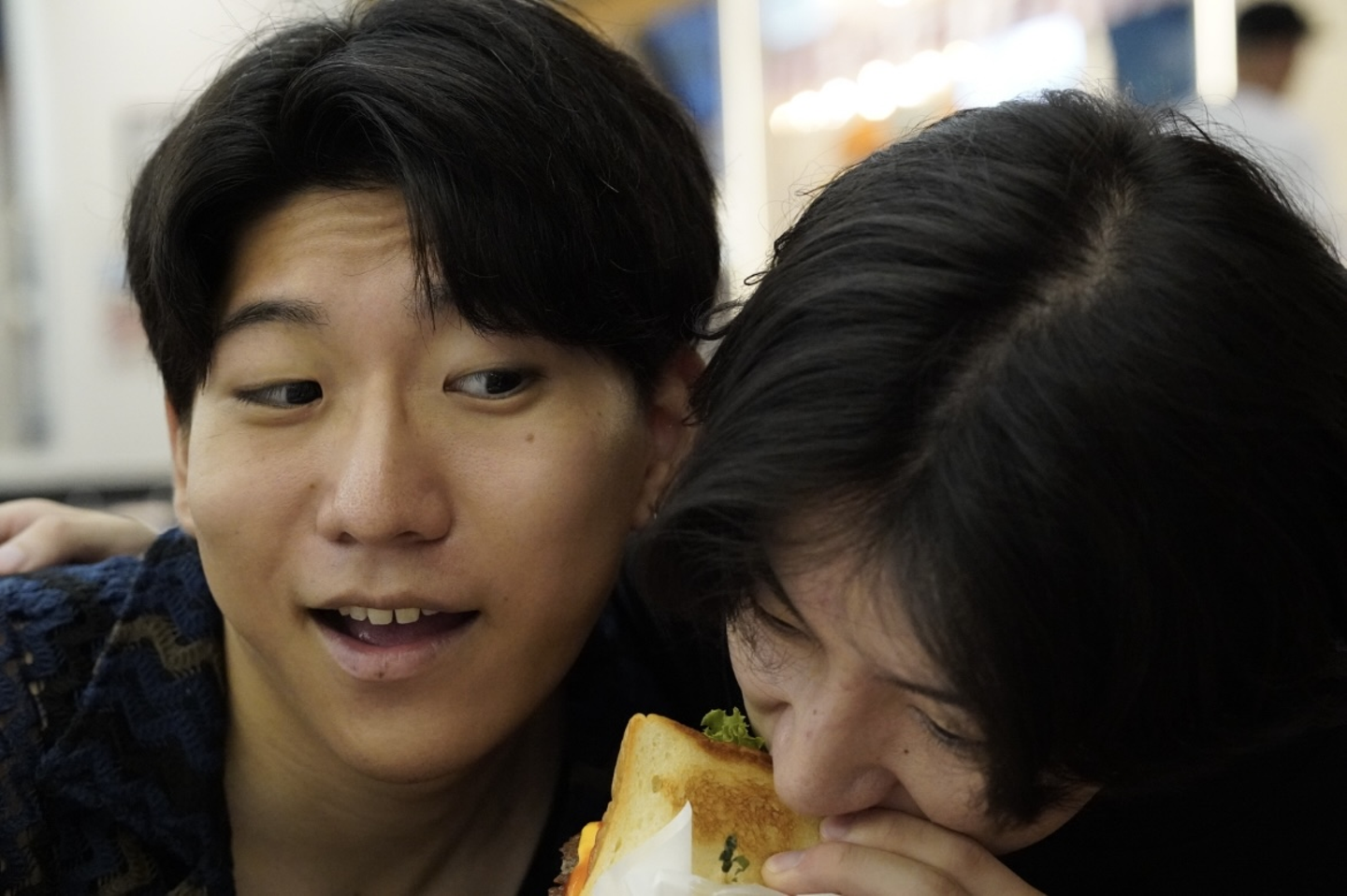 宇留野さんと持田さんです!2人で1つのハンバーガーを取り合っています(笑)