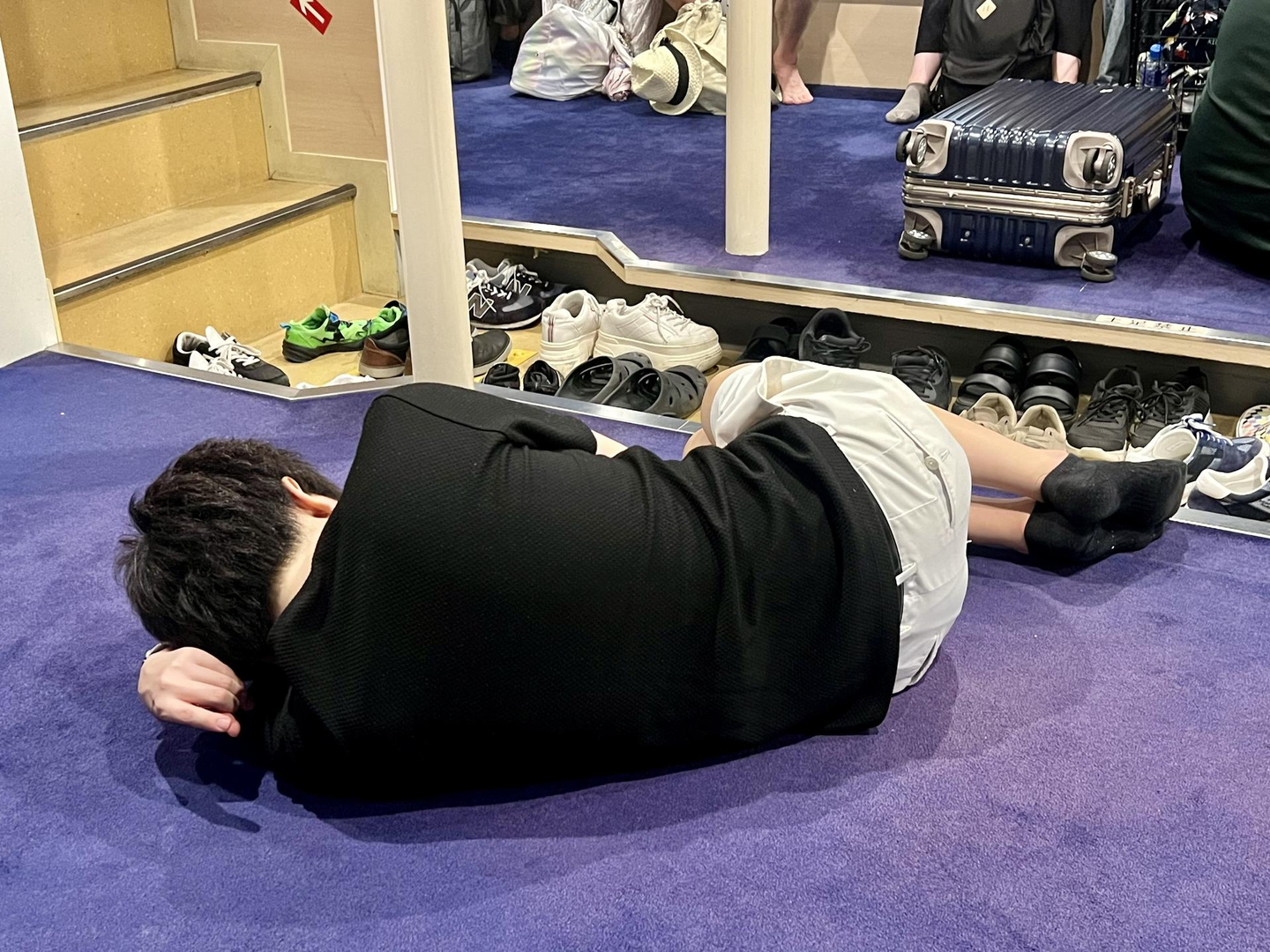 初島にて全力でレジャーを楽しみ、一同お疲れのご様子。
