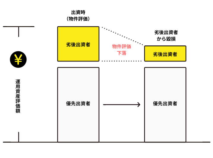 この構造により、劣後出資部分が先に損失を負担するため、投資家の皆様が出資された優先部分の元本の安全性を向上させることができます。