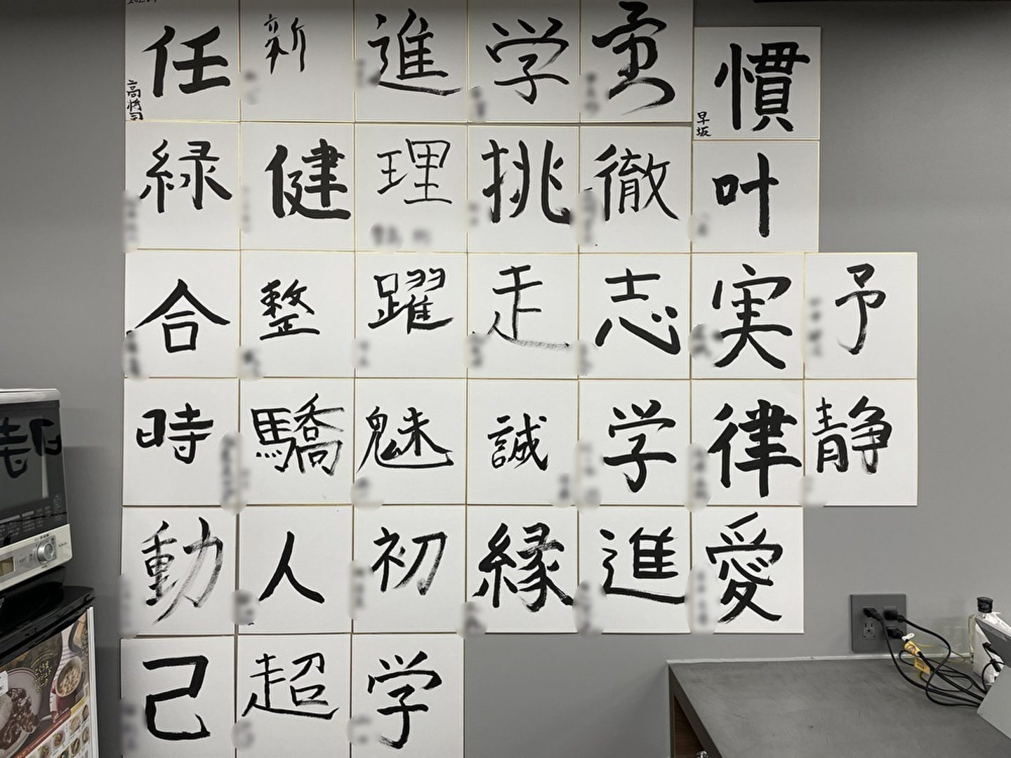 皆さんがしたためた字は執務室の一角に掲示しています。