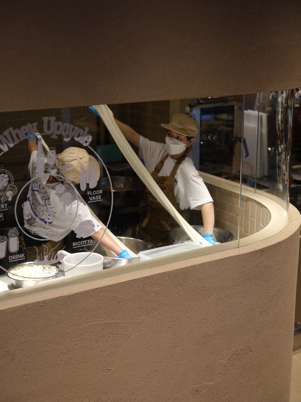 東京店では、世界の食文化を繋げるオリジナルのピザ、店内工房で作る自家製フレッシュチーズ、サステナブルな食材をつかった日本独自のメニューを用意。