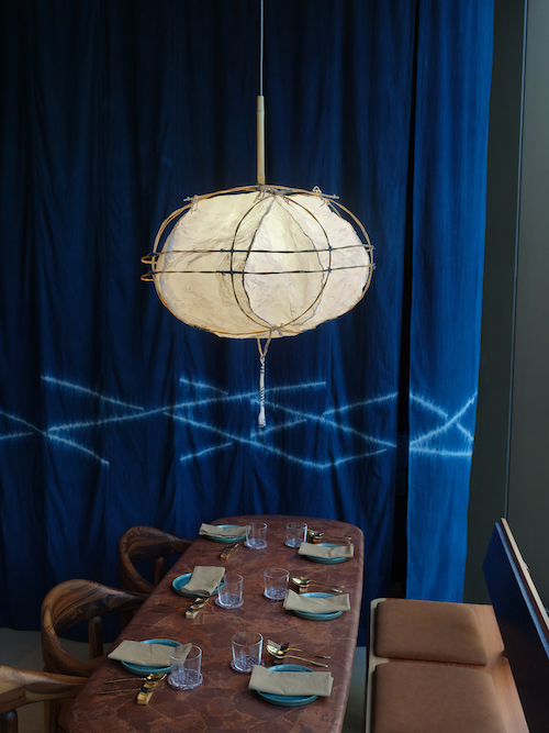 「海藻は、海の多様性を守るために重要な役割を持っていて、それは持続可能な漁業につながっていきます。このランプシェードは、そうした海とのつながりや海藻の重要性を伝えるものです。料理や、店内にあるものの素材を通して、地球や自然とのつながりを感じていただきたいと思っています」