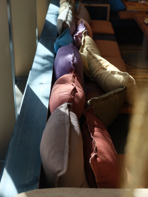 そう話す久保田さんは、Pizza 4P’sの店内にある椅子やテーブルなどの家具から、テーブルのセットアップまで、すべてのものに地球とのつながりを感じられるストーリーがあると話す。クッションは野菜の皮など食品廃棄物を使って染められていたり、コースターはベトナムのリサイクルブランド「PLASTICPeople」によって廃棄プラから作られていたり……カトラリーは、銃弾の空薬莢(弾を打ち終わった後の薬莢)からプロダクトを作るカンボジアの「Andkow」が製作したものだ。