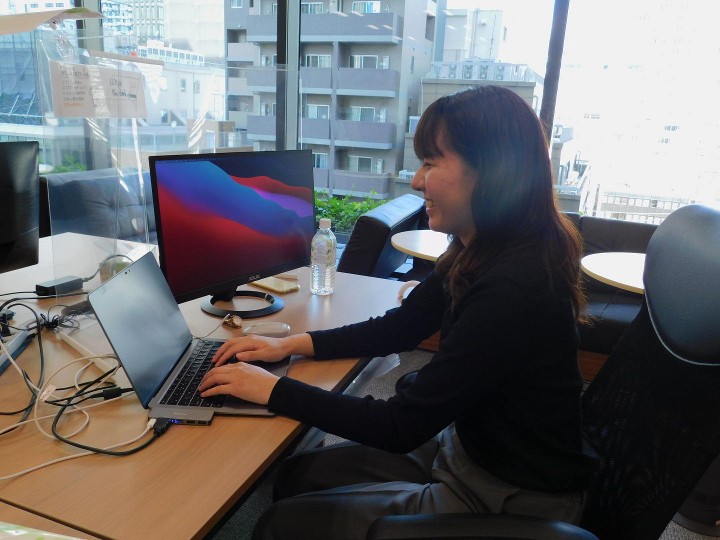 現在は、改修をメインとした自社システムの開発や、社内でのITの資産管理としてPCの管理やメンテナンスなどもやっています。加えて新卒採用や弊社の働き方の特徴でもある業務委託パートナーの方へ業務のレクチャーや、採用フローの設計といった採用全般の仕事にも携わっています。最近では中途採用の1次面接も任せてもらえるようになり、より一層のやりがいを感じる日々です!