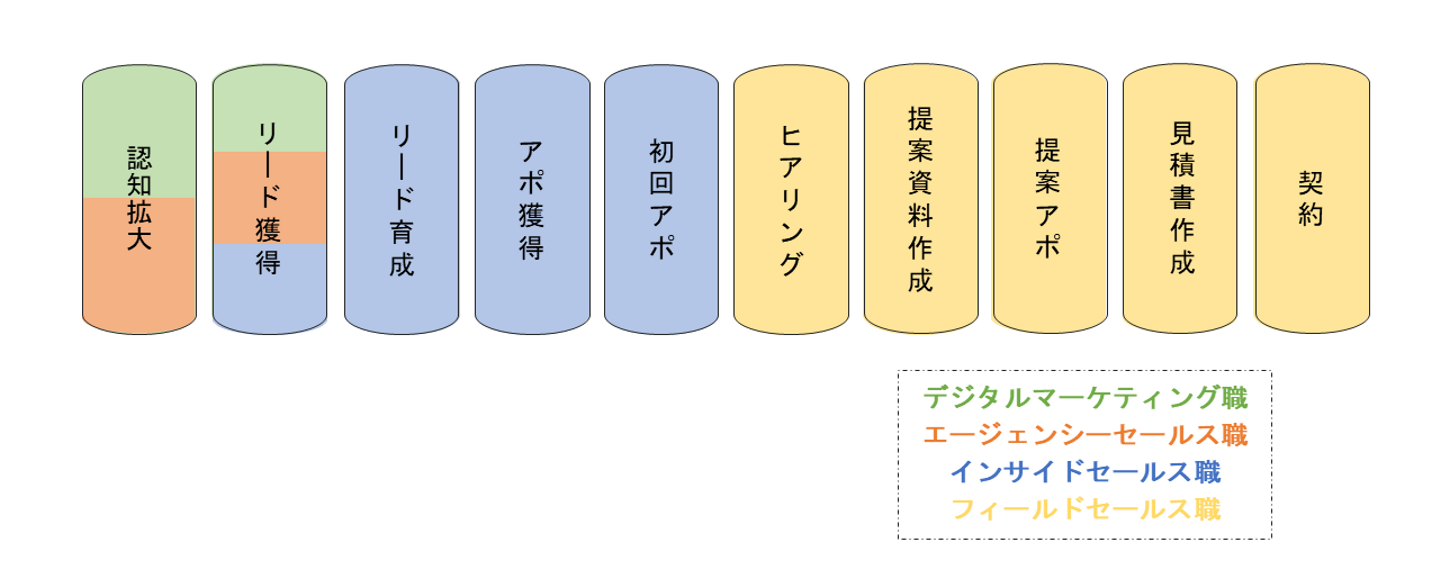 ✔︎ プロジェクト運用担当と連動し、受注に近い案件の相談及び既存の案件対応について連動して働くことができる✔︎フィールドセールスの売り上げ目標(新規営業)=(会社の売上目標)-(既存営業)-(代理店営業)