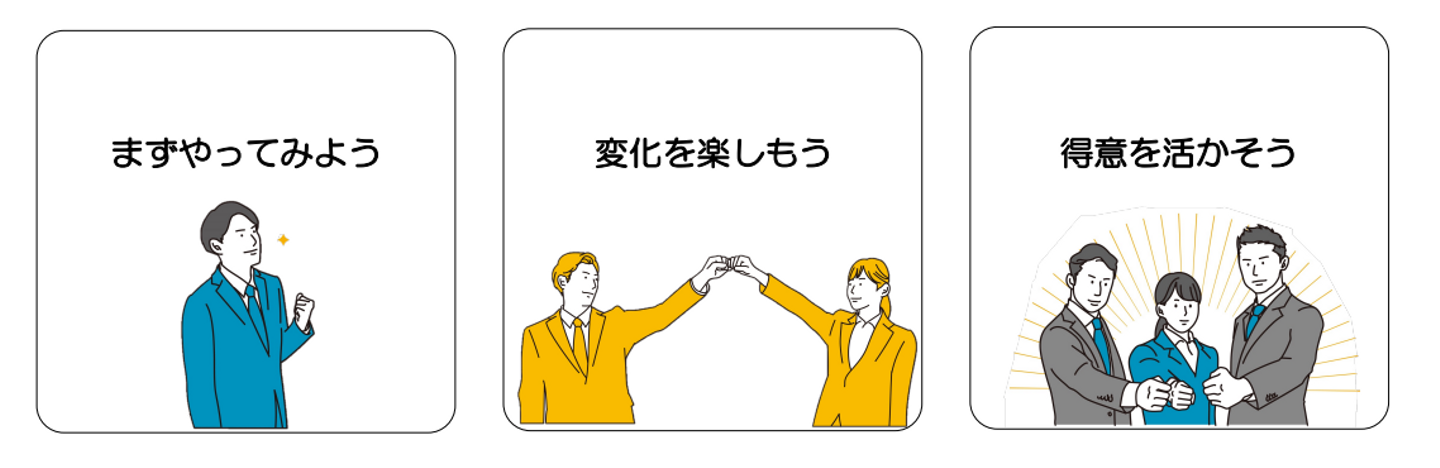・「まずやってみよう」「変化を楽しもう」「得意を活かそう」