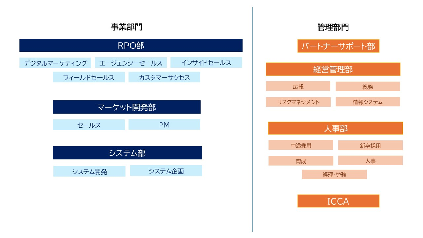 ※マーケット開発部は基本的にパートナー企業が仲介する形だが、RPO部はお客様と直接お取引をしている。