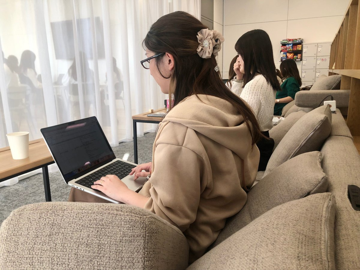 ないです。大学も文系でした。ただ小学生時代からネットゲームに夢中で、パソコンは好き。IT業界が活況だけど、30歳なると転職しづらいかもしれないから20代のうちにと思って。退職して都内のプログラミングスクールに通い始めました。ちなみに私が自宅療養中に始めたのはProgateという学習サイトです。とっつきやすいので(社内の)皆さんもぜひ(笑)