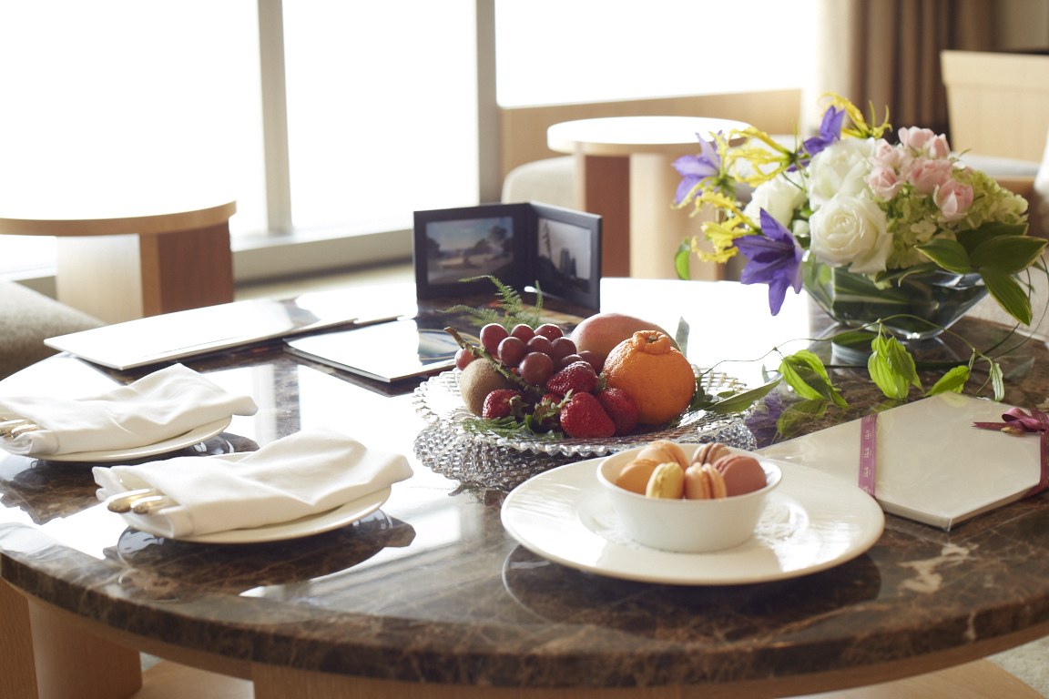 - 客室の最終確認やお客様をお迎えするフルーツやカトラリーのセットもバトラーのお仕事。