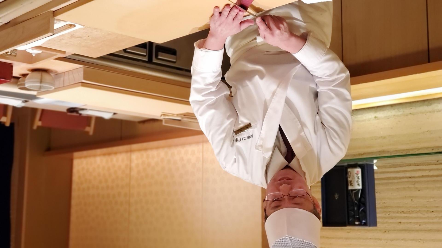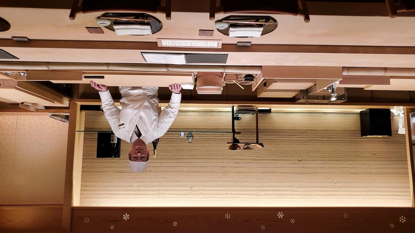 調理部門の中でも鮨処で働いています。鮨は調理から接客まで全てを担当します。お客様の反応を見ながら対応を考えたりできるので、その点ではすごく勉強ができますね。私は鉄板焼の経験もあって、即興でいろいろ対応をするスキルを磨いてきたので、臨機応変にやっていくのは得意ですね。VIPのお客様が多い店舗ではあるので、ご要望をその場で聞きながら対応する経験を積めるのも良いところです。