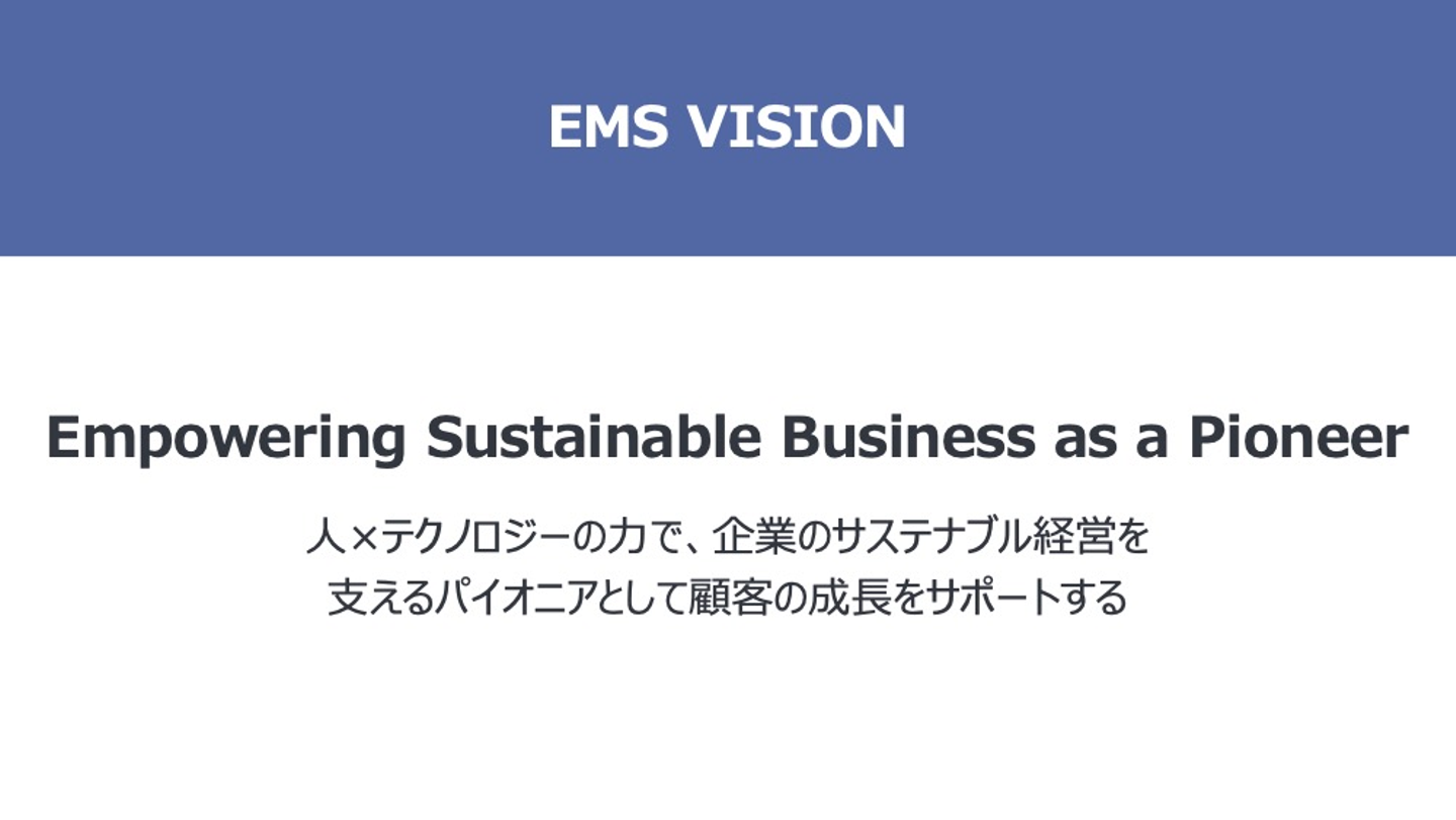 企業と社会が一体となって成長し、共に発展し続ける未来の土台を築き上げたい。そこにこそ、私たちEMSの存在意義があります。
