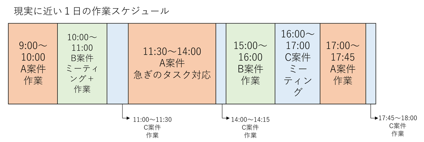 しかし、現実はミーティングがあちこちに入り、また急ぎのタスクを振られることも多々あります。