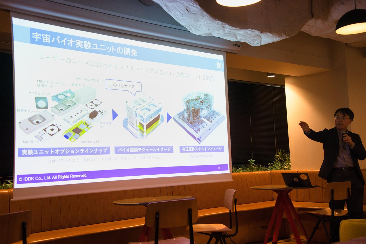 IDDKは、「いつでも」「どこでも」「だれでも」使える顕微観察技術で未来に貢献することを目指した会社です。コア技術であるワンチップ顕微観察技術「Micro Imaging Device(MID)」の応用先として、宇宙バイオ実験への活用を目指し、オートメーション宇宙バイオ実験装置(MBS-LAB)の開発を行っています。宇宙バイオ実験のプラットフォーム企業になることで宇宙利用の民営化を促進し、地上での研究だけでは解決できない人類課題に対してイノベーションを生みだす場を提供します。