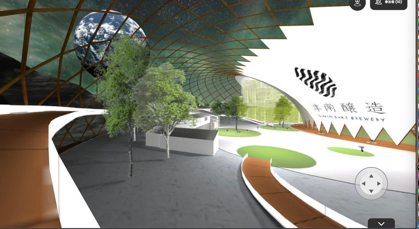 講演後にはメタバース空間上にある月面酒蔵のツアーを実施し、月面での酒造りの可能性について考えました。月面酒蔵のデザインは、津南醸造をモデルに田野アトリエ一級建築士事務所により設計されています。