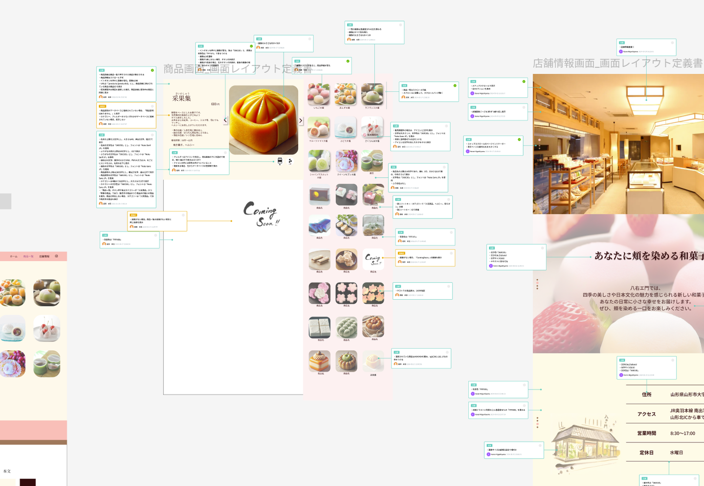 figmaを利用した画面のモックアップになります。和菓子の魅力が伝わるようにアニメーションの工夫や、企業の魅力がわかるようなコピーライトがちりばめられています。