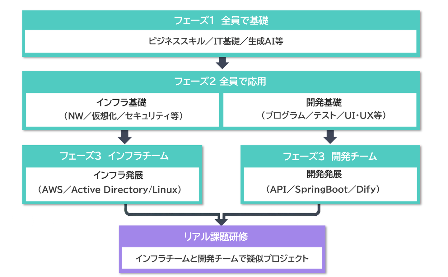 フェーズ2:全員で配属に向けてIT技術の応用を学びます