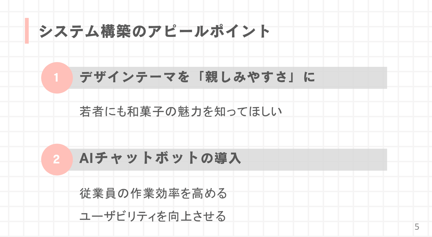2024年度は和菓子のECサイトの構築し、ブランド認知力を向上させることを提案しました。