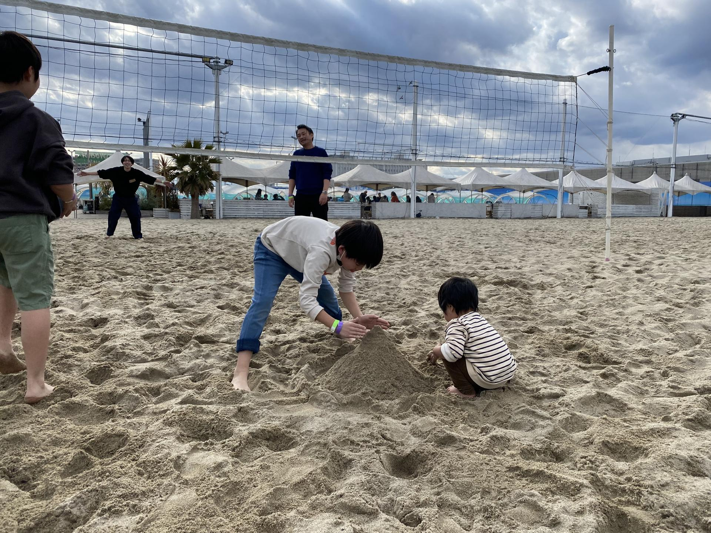 👆初対面なのに大人も交えて本気でビーチバレーをする一方、コート内でおもむろにお山作りに興じる自由奔放な子供たち(笑)
