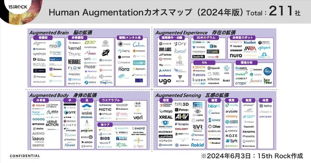 詳細は「 Human Augmentationカオスマップ(2024年版)〜未来を切り開くスタートアップ 」をご覧ください。