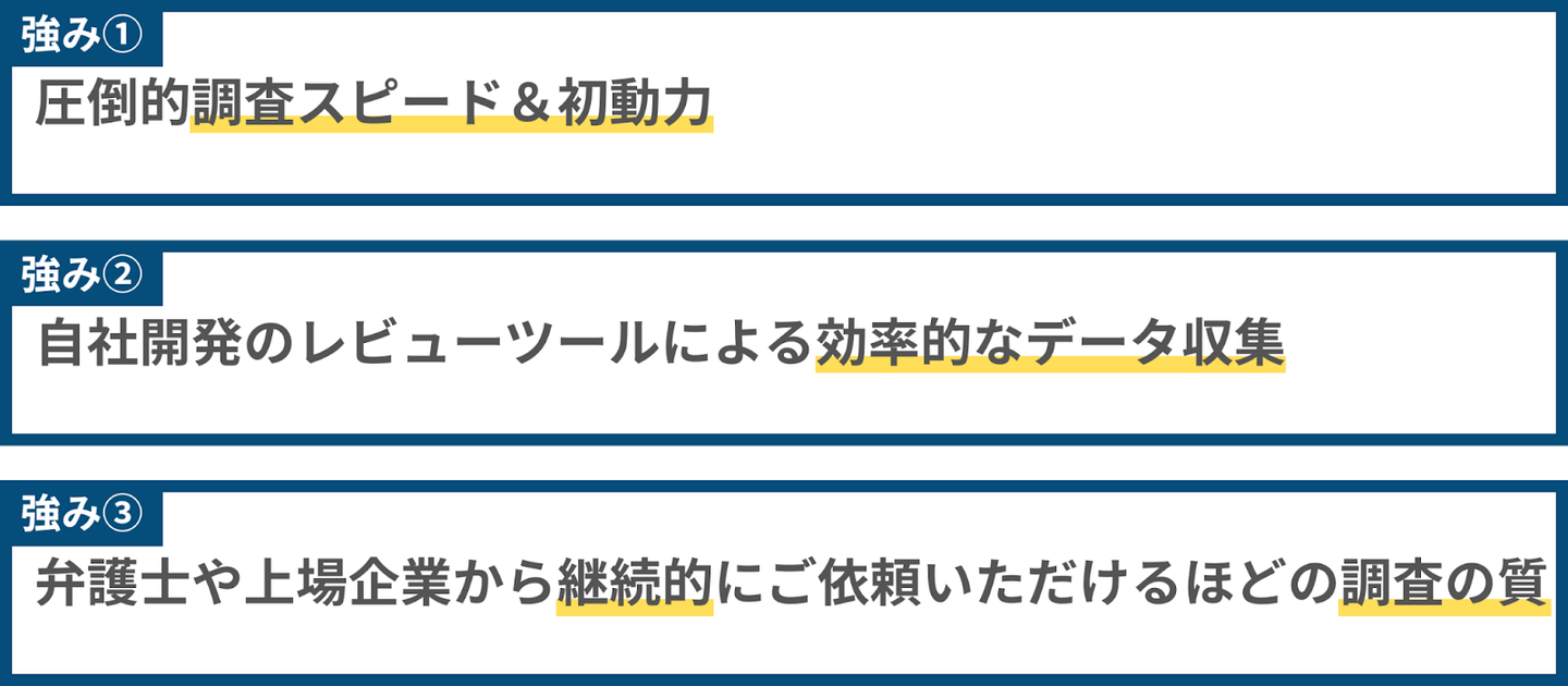 設立のきっかけは、従来利用していた他社製ツールよりも、より速く効率的に証拠を発見できるレビューツールを開発すると共に、適正な価格で質の高いフォレンジックサービスを提供したいという思いを共有した仲間との出会いです。