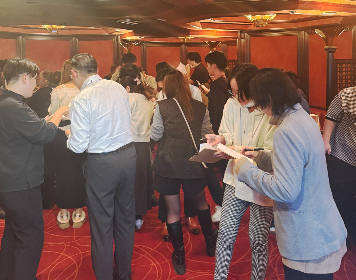 ゲームを通して交流を深められ、会場の前方にいる弊社代表のもとへ行って、金銀銅のメダルをGET!!🏅