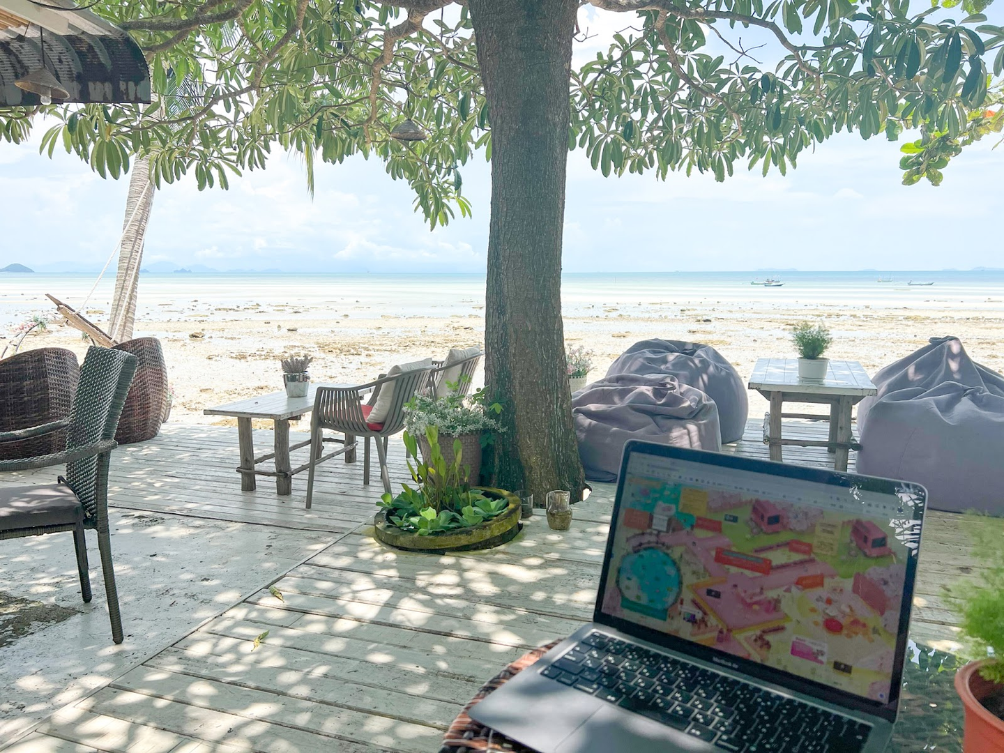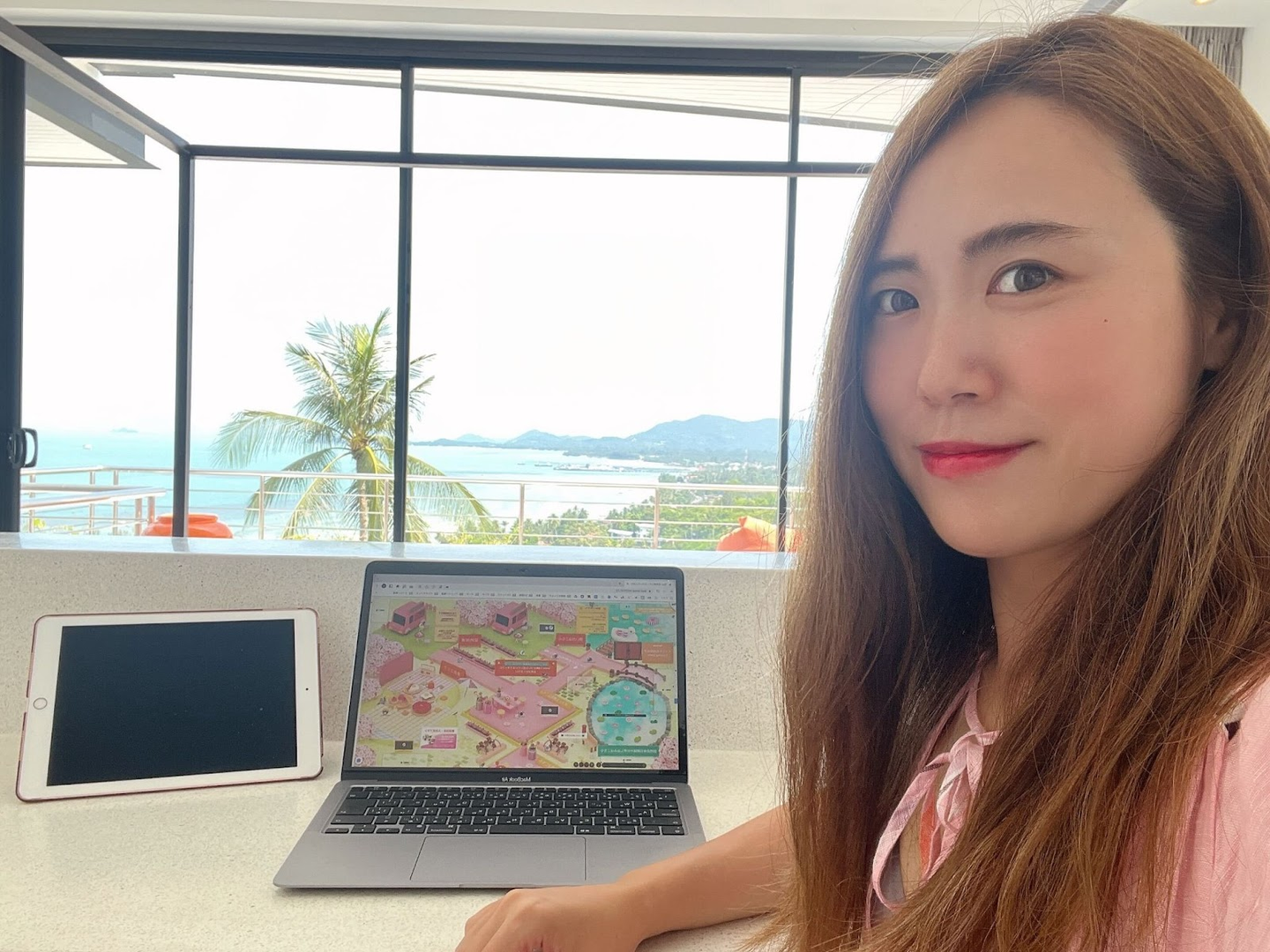 oViceに入社してから1年の3分の2はワーケーション生活をしています。ちゃんと数えたことはないですが、日数にすると年200日以上はワーケーションをしているのではないでしょうか(笑)。場所はどちらかというとシティ派なので京都や大阪、金沢や福岡にいることが多いです。京都に行きつけの美容院も見つけました。リゾートも大好きなので沖縄にいることも多く「また沖縄?」とメンバーから言われます。最近タイがいち早く入国規制を解除したので、海外ワーケーションにもチャレンジしました!