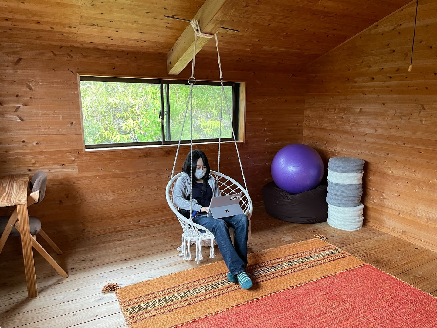 「ストレスなく仕事ができる通信環境があること」「プライベートな空間があること」の2つです。ワーケーションは「ワーク」と「バケーション」を組み合わた造語で、「バケーション」のイメージが強い方も多いかと思いますが、スタートアップらしく仕事は忙しく、費やす時間も長いので「ちゃんと仕事ができる環境なのか」は事前にチェックしますね。仕事中はoVice上で口頭でコミュニケーション取る機会も多いので、通信環境だけでなく個室などプライベートな空間があって話している内容が社外の人に伝わらないかといった点も気にしています。