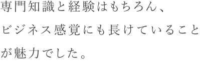 松原先生は、大手監査法人勤務後、トヨタ系のベンチャーキャピタルで10年のご経験があり、資金調達、事業計画策定、収益性改善、上場支援に携われており、知識や経験は申し分ありませんでした。面談初日から事業計画を理解し、ファイナンスに加え経営助言をいただきました。数字と商売を理解した商人だと感じ、ブラザシップを選びました。